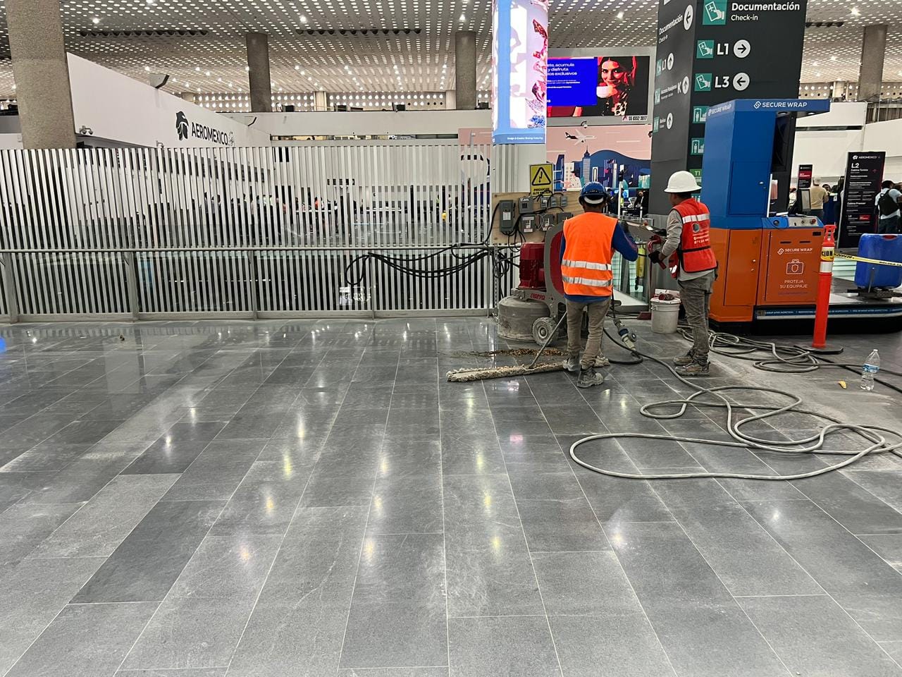 Se lleva a cabo el proyecto de Desbaste, Pulido y Abrillantado (DPA) en una importante terminal aeroportuaria. Nuestro objetivo es renovar sus superficies, garantizando alta calidad y durabilidad.